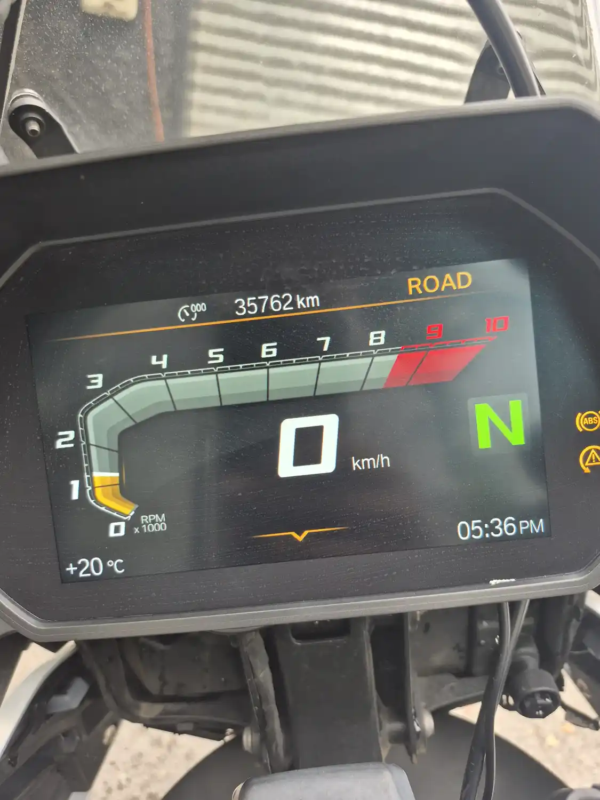 | OBSERVACIONES: | Motor bicilíndrico paralelo de 853 cc (77 CV, 83 Nm) con transmisión de 6 velocidades, suspensión delantera invertida y trasera monoshock (ajuste de precarga), frenos delantero dual disco con ABS Pro, asiento ajustable (770-820 mm), tanque de 15 L y peso 224 kg (en orden de marcha). Incluye pantalla TFT de 6.5″ con conectividad, modos de conducción (Rain, Road, Dynamic), control de tracción, luces LED y llantas de aleación 21″/17″ |