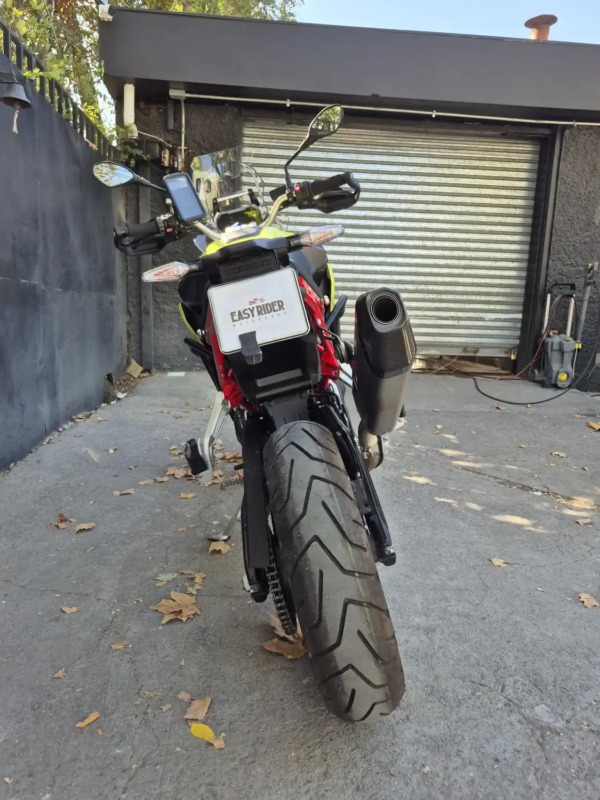 | OBSERVACIONES: | Motor bicilíndrico en paralelo de 895 cc refrigerado por líquido, que desarrolla 105 CV a 8,500 rpm y 93 Nm de par a 6,500-6,750 rpm , acoplado a una transmisión manual de 6 velocidades con embrague multidisco en baño de aceite y transmisión final por cadena . Su chasis tipo puente de acero con motor autoportante soporta una suspensión delantera invertida de 43 mm totalmente ajustabl |