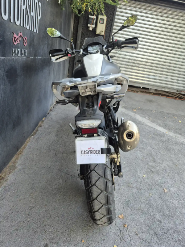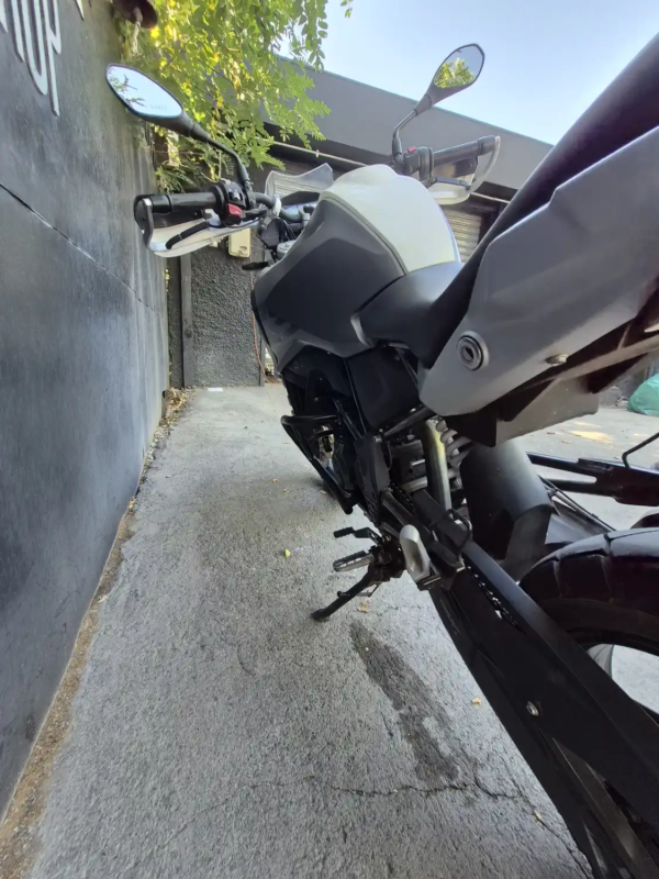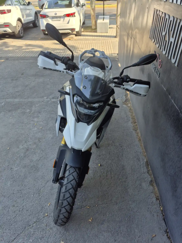| OBSERVACIONES: | Motor monocilíndrico de 313 cc (34 CV, 28 Nm) refrigerado por líquido, con transmisión de 6 velocidades, suspensión delantera invertida y trasera monoshock (precarga ajustable), frenos ByBre con ABS, asiento alto (835 mm), tanque de 11 L y peso 175 kg (en orden de marcha). Incluye llantas de radios 19″/17″, protecciones de motor, parabrisas pequeño, pantalla LCD y faros LED |