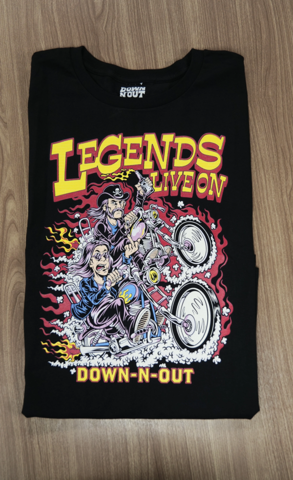 La polera Living Legends de Down N Out es una edición inspirada en Living Legends, con diseño exclusivo y estampado full color pensado para fans del rock.