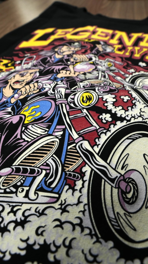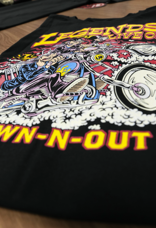 La polera Living Legends de Down N Out es una prenda diseñada para quienes viven la música con actitud. Este modelo pertenece a la colección Living Legends y rinde homenaje a uno de los íconos más influyentes del rock mundial. Su diseño destaca por un arte estilo cartoon con llamas y estética biker, logrando una prenda llamativa, auténtica y fiel al espíritu rebelde del “Príncipe de las Tinieblas”.