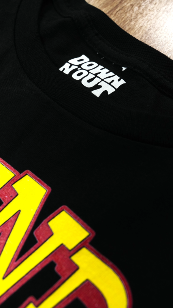 El diseño incluye impresión en la parte frontal y trasera, lo que convierte esta polera en una pieza destacada dentro de cualquier colección de ropa temática rock. Cada detalle está cuidadosamente trabajado para capturar la energía única que caracteriza la estética clásica de Down N Out.