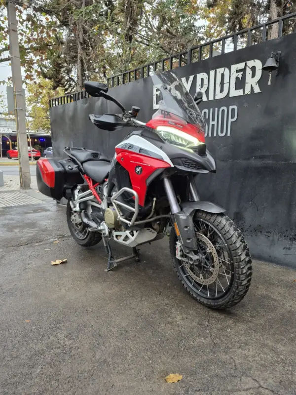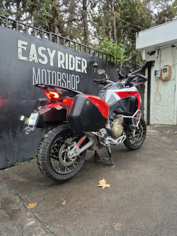 | OBSERVACIONES: | Maletas Laterales con llave, Defensa cubre cárter, Amortiguación Regulable, Transmisión: 6 velocidades, Sistema de conducción: Ducati Multimedia System , Asistencia de marcha atrás, Control de crucero, Hill Hold, TPMS, Modos de conducción, Llantas de aleación de aluminio fundido, Altura del asiento: 840 mm, Depósito de combustible: 22 litros. |