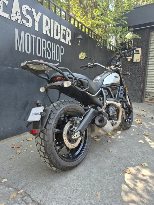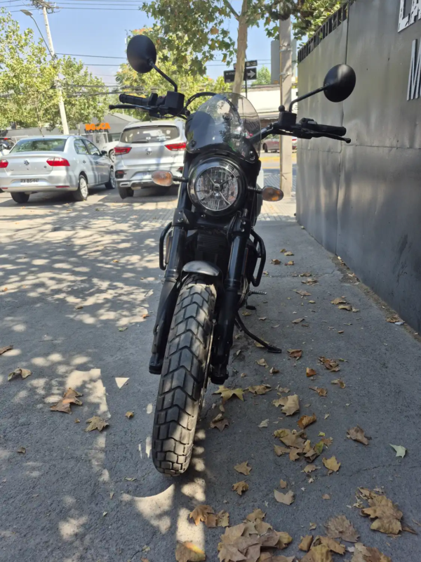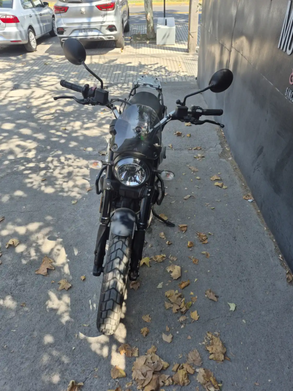 | OBSERVACIONES: | Motor L-Twin Desmodrómico de 803 cc refrigerado por aire/aceite, que desarrolla 73 CV a 8,250 rpm y 65 Nm de par a 7,000 rpm, acoplado a una transmisión manual de 6 velocidades con embrague asistido antirrebote. Su chasis tubular de acero en celosía soporta una suspensión delantera Kayaba invertida de 41 mm (150 mm recorrido) y una trasera Kayaba monoamortiguador (150 mm recorrido) pre-cargable. El sistema de frenos incluye un disco delantero de 330 mm con pinza radial Brembo M4.32 de 4 pistones y un disco trasero de 245 mm, con ABS de doble canal y función «Cornering» de serie. Su carácter urbano-retro se completa con un peso en orden de marcha de 189 kg, una altura de asiento de 795 mm, un depósito de 13.5 litros, llantas de radios de 10 radios, neumáticos mixtos, y un paquete electrónico que ofrece 3 modos de conducción (Active, Journey, City), control de tracción (DTC) y una pantalla TFT circular de 4.3″. |