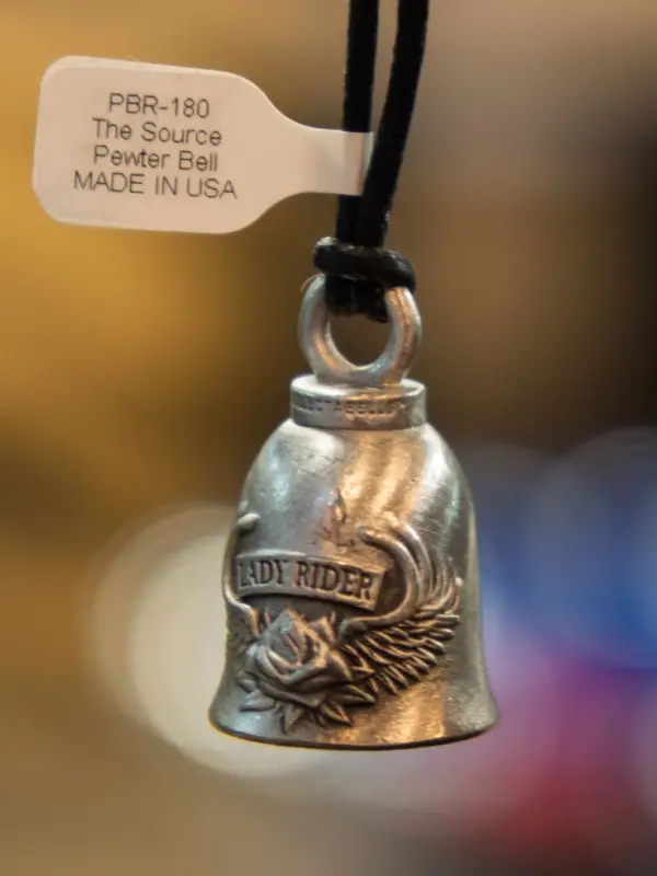 La historia de la Guardian Bell cuenta que su tintineo constante ahuyenta a los «gremlins», esos malos espíritus de la carretera que causan problemas. Al colgar esta campana de la suerte para moto en el punto más bajo de su máquina, la rider se asegura de que solo las buenas vibras la acompañen. Puedes leer más sobre esta leyenda del motociclismo aquí. El diseño de alas y rosas refuerza esta protección, simbolizando un ángel guardián que la cuida en su viaje.