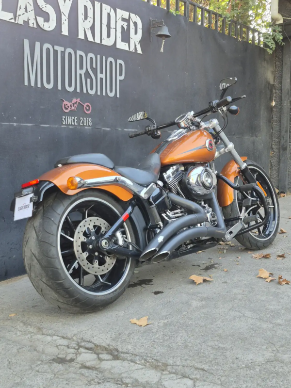 | OBSERVACIONES: | Motor V-Twin **Twin Cam 103B** refrigerado por aire de **1.690 cc**, torque aproximado de **130 Nm**, inyección electrónica **ESPFI**, transmisión de **6 velocidades** con transmisión final por correa, chasis Softail de acero, suspensión delantera horquilla telescópica de **49 mm** y monoamortiguador trasero oculto ajustable en precarga, frenos de **disco delantero y trasero con ABS**, rueda delantera de **21” y trasera de 18” con neumático ancho**, peso aproximado de **309 kg en orden de marcha** y estanque de combustible de **18,9 L**. |