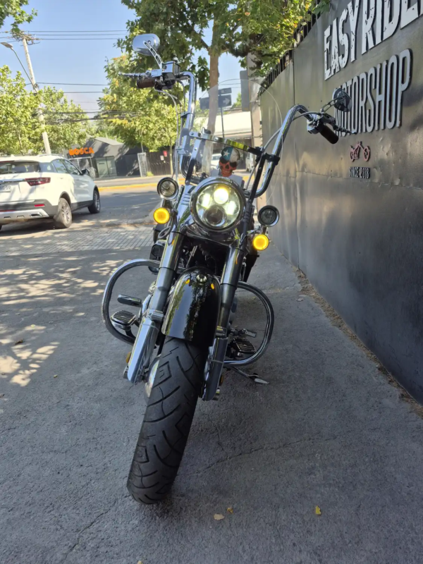 | OBSERVACIONES: | Motor Twin Cam 96 de 1.584 cc (145 Nm de torque) refrigerado por aire, con transmisión de 6 velocidades Cruise Drive®, suspensión delantera telescópica y trasera Softail oculta (falso chasis rígido), frenos delantero disco simple con ABS (opcional en 2012), asiento bajo (700 mm), tanque de 18.9 L y peso 333 kg. Incluye maletas rígidas con cerraduras, parabrisas envolvente desmontable, defensas cromadas, llantas de radios con tapacubos, escape 2-en-2 cromado y medidores clásicos en el tanque. |