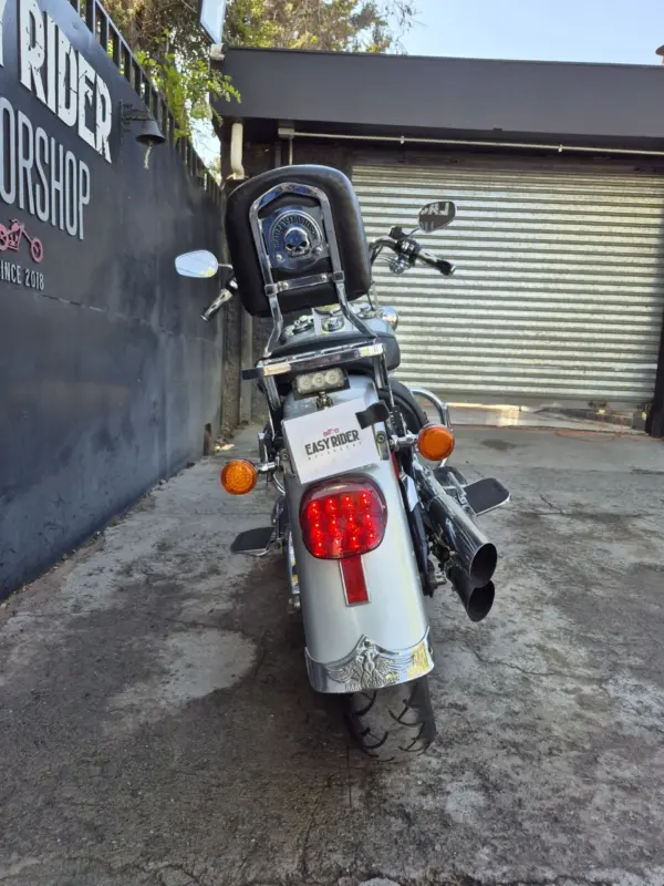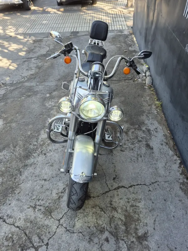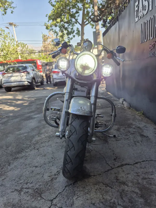 | OBSERVACIONES: | Monta un motor Twin Cam 88B de 1.450 cc (refrigerado por aire, 115 Nm de torque) con transmisión de 5 velocidades, suspensión delantera telescópica y trasera oculta, frenos delantero disco simple sin ABS (estándar en 2004), asiento bajo (680 mm), tanque de 18.9 L y peso 320 kg. Destaca por sus llantas sólidas de aleación (delantera 16″ y trasera 16″), escape cromado 2-en-2, faro delantero ancho y estilo muscular con guardabarros abultados. |