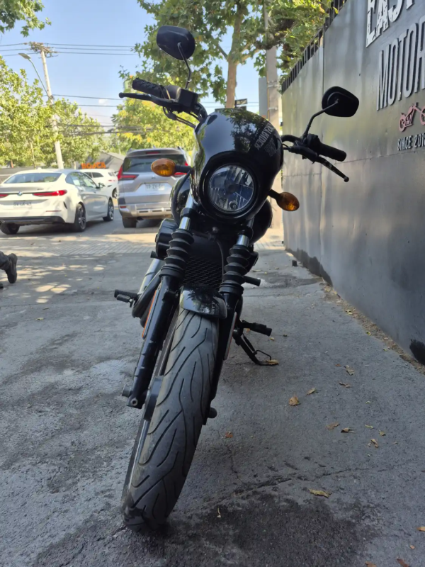 | OBSERVACIONES: | Motor Revolution X V-Twin de 749 cc (refrigerado por líquido, ~59 Nm de torque) con transmisión de 6 velocidades (caja de sexta), suspensión delantera telescópica y trasera twin-shock, frenos delantero disco simple, asiento bajo (709 mm), tanque de 13.1 L y peso 222 kg. Diseño minimalista y urbano con llantas de aleación 17″, escape 2-en-1, manillar ancho, faro LED y cuadro digital-analógico. |
