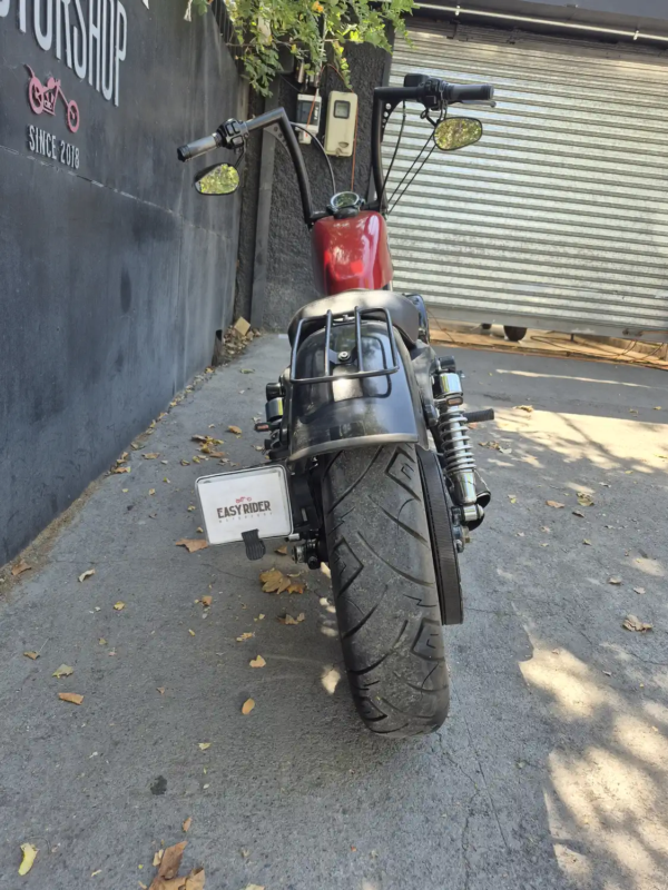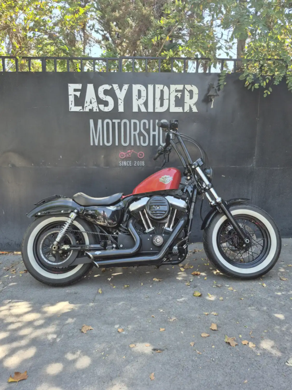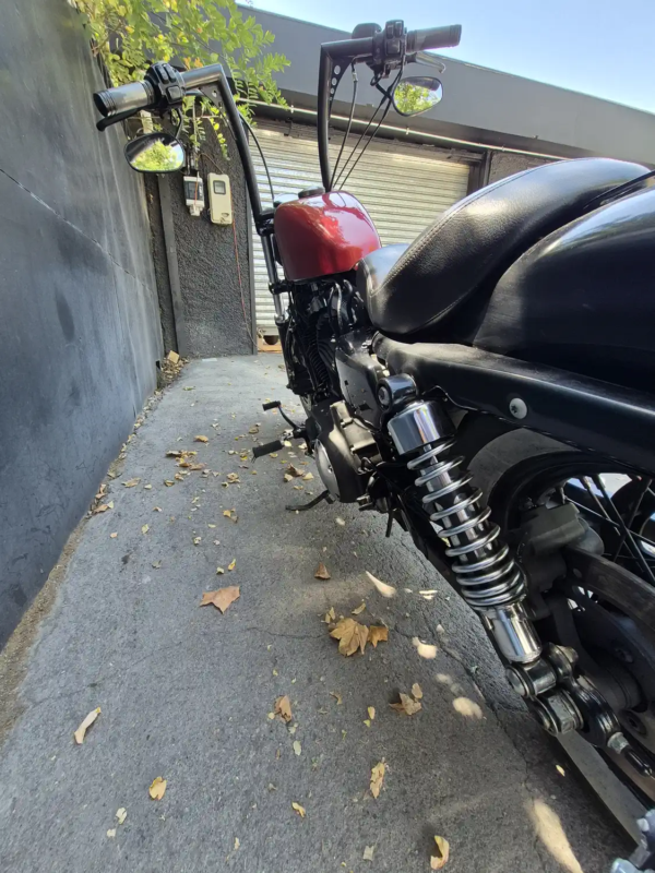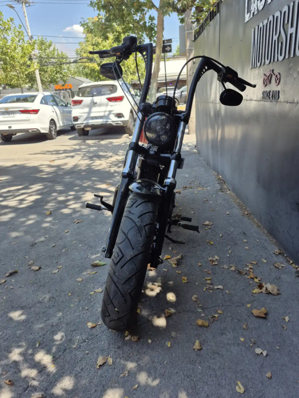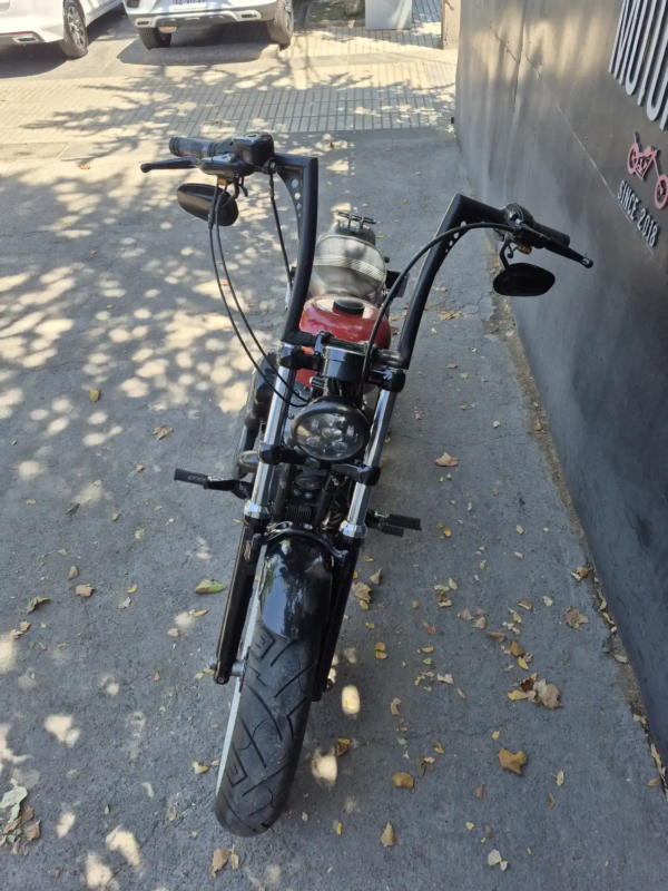 | OBSERVACIONES: | Motor Evolution V-Twin de 1.202 cc (refrigerado por aire, ~96 Nm de torque) con transmisión de 5 velocidades, suspensión delantera telescópica y trasera pregonada, frenos delantero disco simple con ABS (opcional en 2015), asiento bajo (710 mm), tanque «peanut» de 7.9 L y peso 255 kg. Diseño agresivo y minimalista con llanta delantera ancha de 16″, escape 2-en-1 corto, manillar ancho «mini-ape», faro LED y medidores analógicos. |