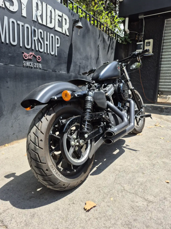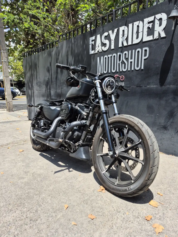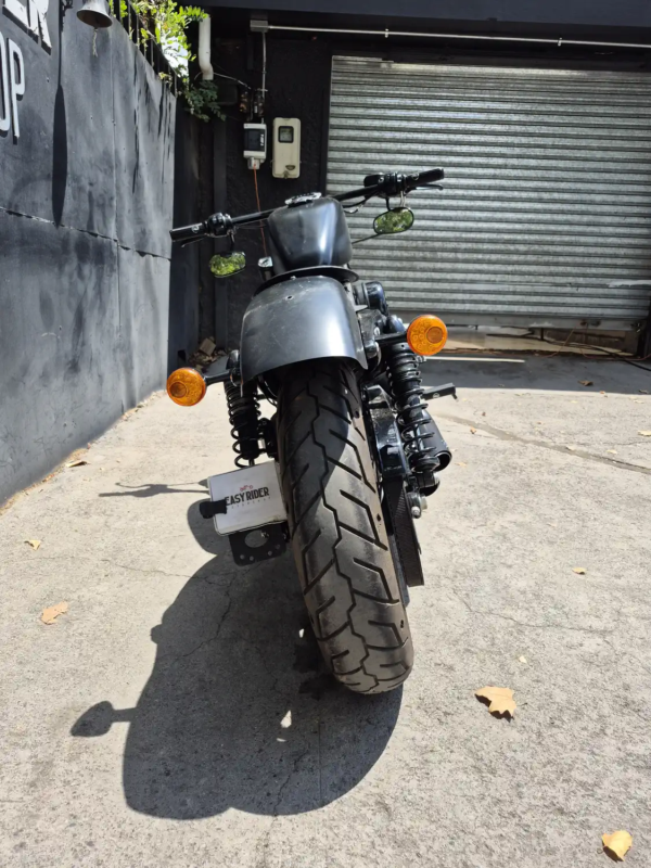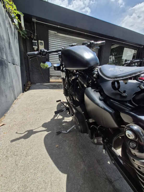 | OBSERVACIONES: | Motor Evolution® V-Twin refrigerado por aire de 883 cc (53.9 plg³), con distribución por varillas y balancines, que entrega su par motor característico a bajas revoluciones, acoplado a una transmisión manual de 5 velocidades. Su chasis de doble cuna de acero soporta una suspensión delantera de 41 mm y trasera con amortiguadores gemelos pre-cargados. El sistema de frenos incluye un disco delantero de 300 mm con pinza flotante de 2 pistones y un disco trasero de 260 mm, con ABS de doble canal de serie. Su estilo «Dark Custom» se define por el acabado negro mate en la mayoría de componentes, el manillar «Mini Ape Hanger» negro, el asiento «Solo» bajo, las llantas negras de 9 radios, el tanque de combustible de 12.5 litros |