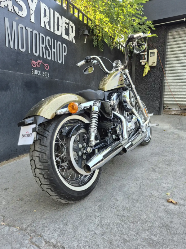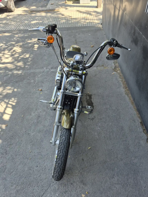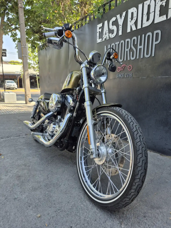| OBSERVACIONES: | Motor Evolution V-Twin de 1.202 cc (refrigerado por aire, ~96 Nm de torque) con transmisión de 5 velocidades, suspensión delantera telescópica y trasera twin-shock, frenos delantero disco simple sin ABS (estándar en 2013), asiento bajo (695 mm), tanque «peanut» de 7.9 L y peso 256 kg. Diseño icónico con horquilla estrecha de 21″, manillar «Ape Hanger» de 12 pulgadas, escape 2-en-1 alto cromado, llantas de radios |