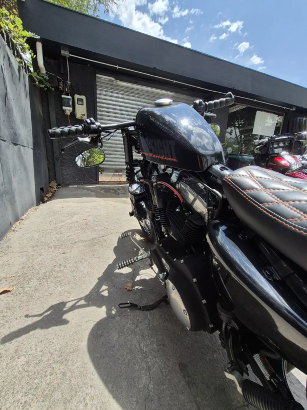 | OBSERVACIONES: | Motor Evolution® V-Twin refrigerado por aire de 1,202 cc (73 plg³), con distribución por varillas y balancines, que entrega su par motor característico a bajas revoluciones, acoplado a una transmisión manual de 5 velocidades. Su chasis de doble cuna de acero soporta una suspensión delantera de 49 mm y trasera con amortiguadores gemelos pre-cargados. El sistema de frenos incluye un disco delantero de 292 mm con pinza flotante de 2 pistones y un disco trasero de 260 mm. El tanque de combustible «Peanut» de 7.9 litros, con una altura de asiento de 710 mm, una distancia entre ejes de 1,510 mm y un peso en orden de marcha de 252 kg. |