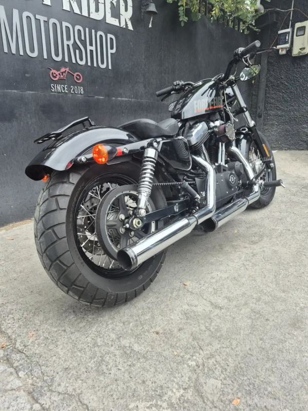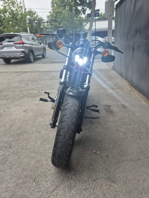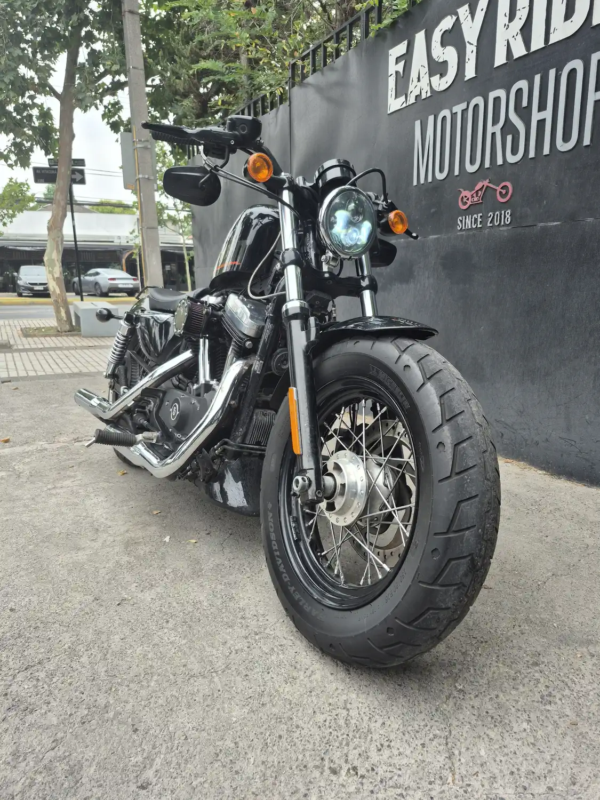 | OBSERVACIONES: | Motor Evolution V-Twin de 1.202 cc (refrigerado por aire, ~96 Nm de torque) con transmisión de 5 velocidades, suspensión delantera telescópica y trasera pregonada, frenos delantero disco simple con ABS (opcional en 2015), asiento bajo (710 mm), tanque «peanut» de 7.9 L y peso 255 kg. Diseño agresivo y minimalista con llanta delanera ancha de 16″, escape 2-en-1 corto, manillar ancho «mini-ape», faro LED y medidores analógicos |