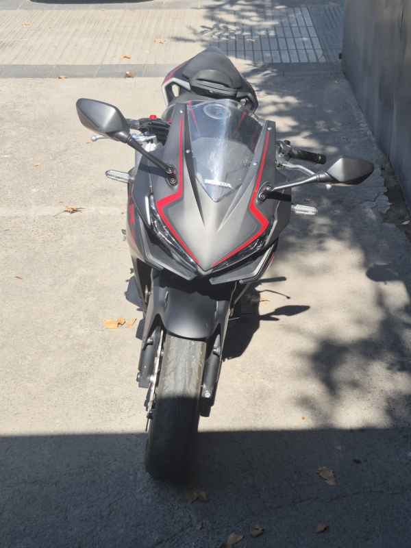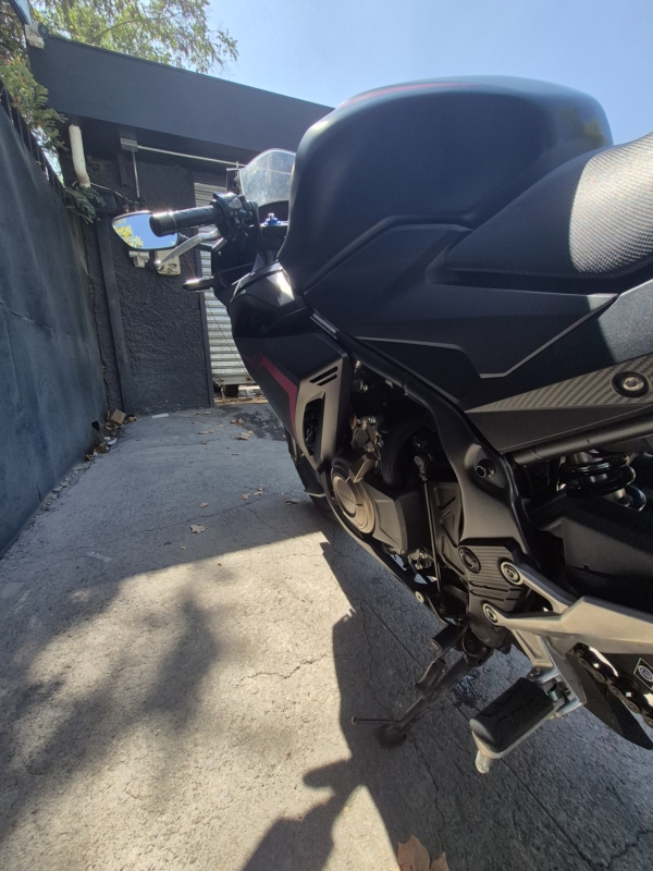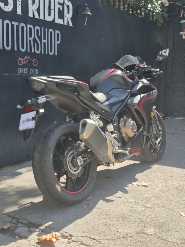 | OBSERVACIONES: | Motor bicilíndrico en paralelo DOHC refrigerado por líquido de 471 cc, potencia aproximada de 48 hp y 43 Nm de torque, inyección electrónica PGM-FI, transmisión de 6 velocidades con embrague asistido y antirrebote, chasis tubular de acero tipo diamante, suspensión delantera horquilla telescópica de 41 mm y monoamortiguador trasero Pro-Link ajustable en precarga, freno delantero de disco de 320 mm y trasero de 240 mm con ABS, ruedas 17”, peso aproximado de 194 kg en orden de marcha y estanque de combustible de 15,7 L. |