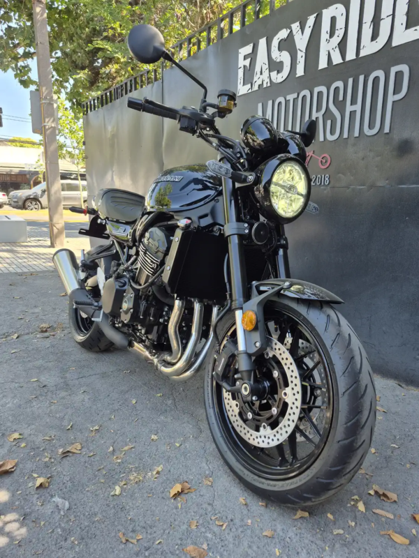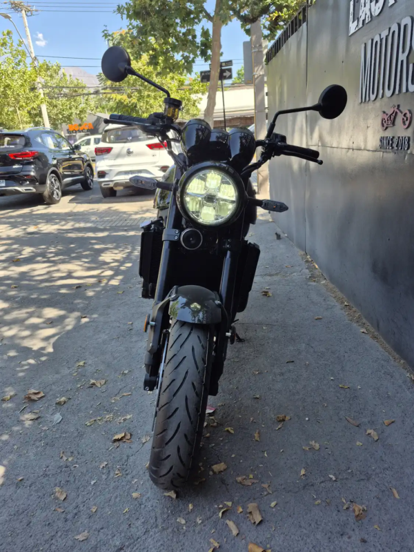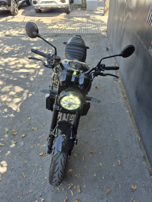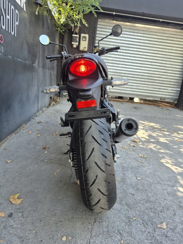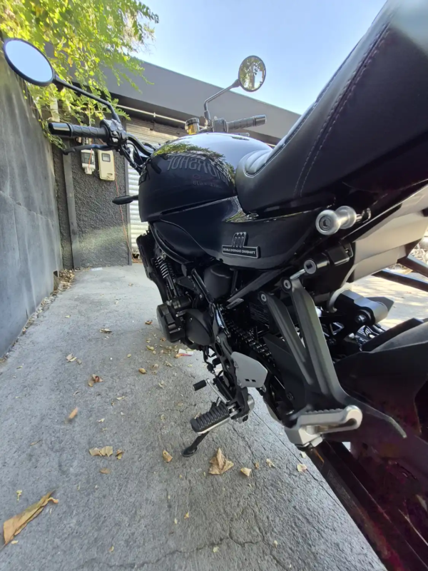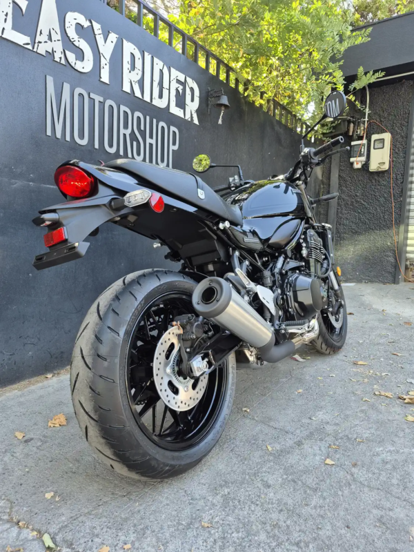 | OBSERVACIONES: | Motor cuatro cilindros en línea de 948 cc (110 CV, 98 Nm) con inyección electrónica mejorada y escape 4-1 sintonizado, suspensión delantera invertida KYB de 41 mm y trasera monoshock (ajuste de precarga), frenos Brembo radiales con ABS Cornering, chasis trellis de acero, asiento bajo (800 mm), tanque de 17 L y peso 215 kg (estimado). Tecnología con pantalla TFT de 5″ con conectividad, modos de conducción (Sport, Road, Rain, Retro —que limita potencia y activa sonido de escape simulado—), control de tracción de 6 ejes y faros LED con forma circular. |