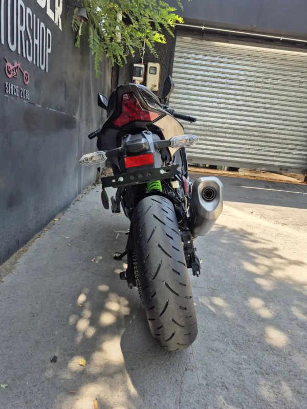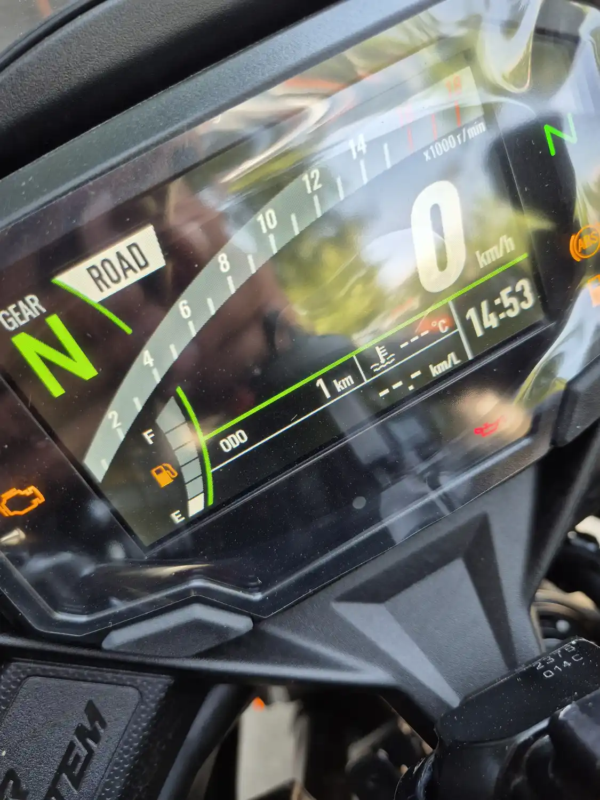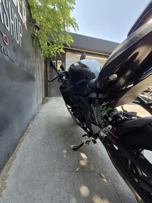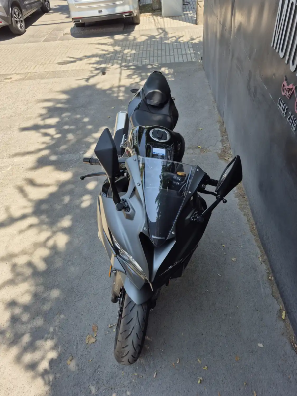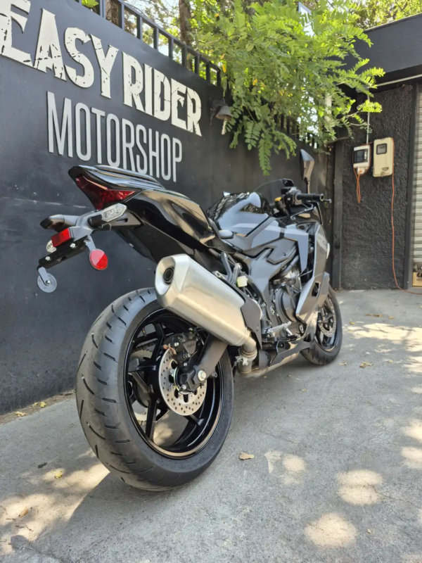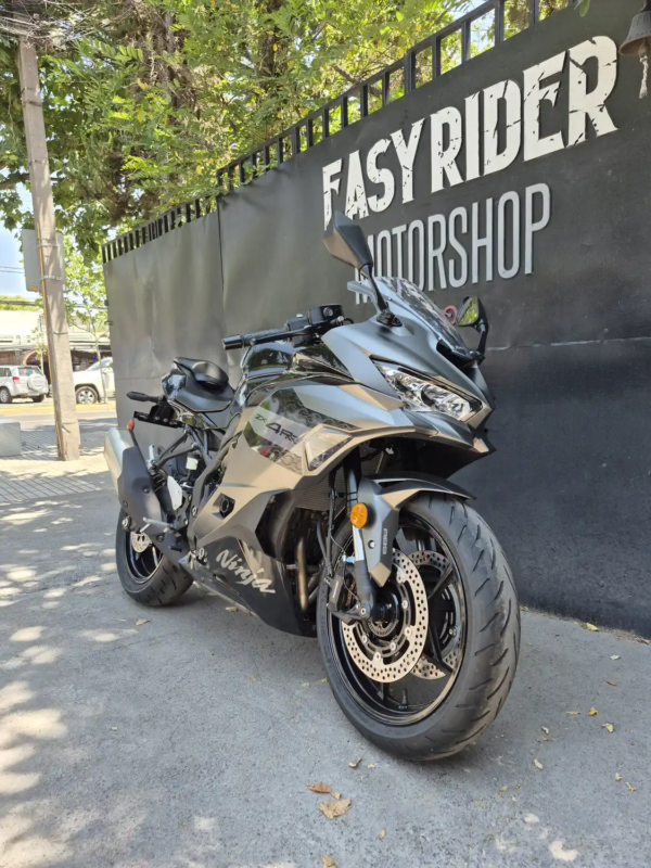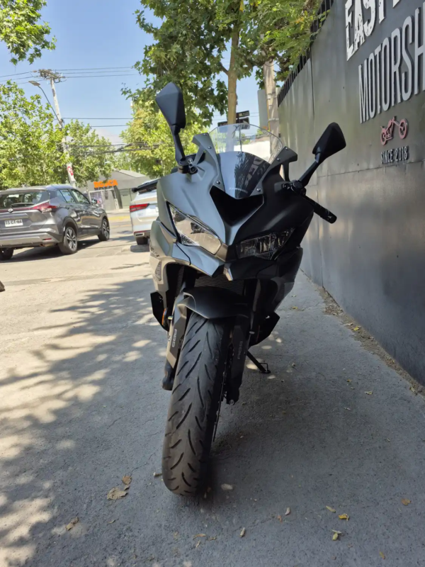 | OBSERVACIONES: | Motor 4 cilindros en línea de 399 cc (≈80 CV, ~36 Nm) con línea roja por encima de 15,000 RPM, transmisión de 6 velocidades y quickshifter bidireccional de serie, suspensión delantera invertida Showa SFF-BP totalmente ajustable y trasera monoshock BFRC-lite, frenos radiales Brembo Stylema con ABS Cornering, chasis trellis de aluminio de perfil bajo, asiento alto (830 mm), tanque de 15 L y peso 188 kg (en seco). Diseño agresivo heredado de la ZX-10R con carenado aerodinámico, luces LED Matrix y alerón doble elevado. Tecnología con pantalla TFT de 5″ con conectividad Kawasaki Rideology, modos de conducción (Sport, Road, Rain, Track + KTRC de 3 niveles) |