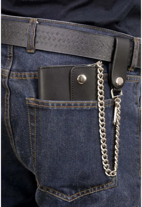 MILWAUKEE LEATHER – Billetera de Cuero Negra Larga con Cadena