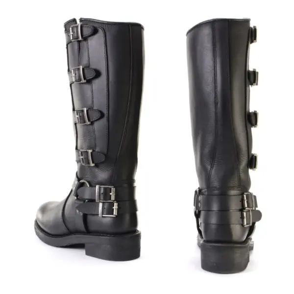 El diseño Harness, con su clásico arnés de anillos y correas, es un símbolo de la cultura biker. Estas botas de moto para mujer en Chile son únicas y cuentan con el hardware de firma de Milwaukee Leather, añadiendo un toque genuino. Igualmente, para asegurar un ajuste perfecto, incorporan múltiples correas ajustables que te permiten adaptar la bota a tu medida.