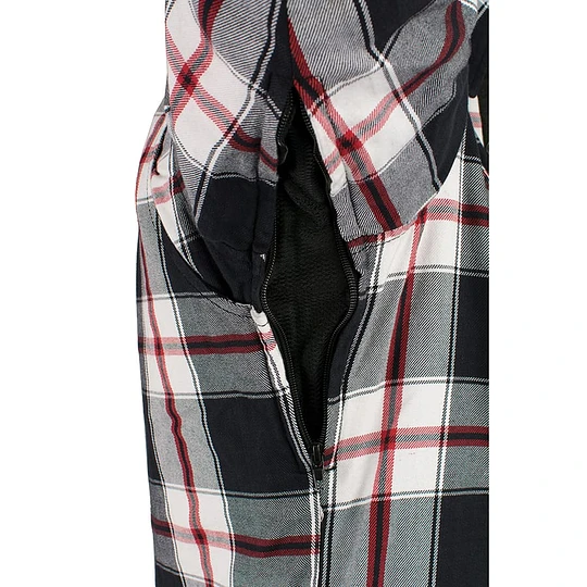 Esta no es una camisa adaptada, es una chaqueta de moto con Kevlar pensada para el movimiento. El panel de acción en la espalda te da flexibilidad total para maniobrar. Para los días de calor, las ventilaciones con cierre bajo los brazos permiten un flujo de aire constante. Su doble cierre frontal (cremallera YKK oculta y botones a presión) asegura que se mantenga en su sitio, y un innovador gancho interior se sujeta a tu cinturón para evitar que la prenda se levante con el viento.