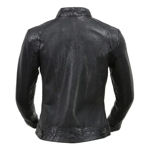 MILWAUKEE LEATHER - Chaqueta de Cuero Negro-Beige Gastado Cierre Recto