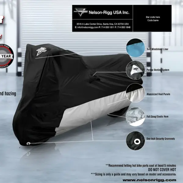 Un consejo de tus expertos en Easy Rider: Aunque la funda cuenta con paneles resistentes al calor, siempre es recomendable permitir que tu moto (especialmente los escapes) se enfríe unos minutos después de un recorrido antes de cubrirla.