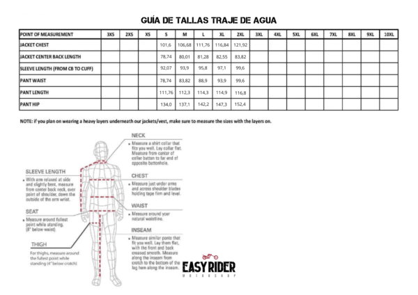 Fabricado en Nylon Oxford 100%, este conjunto ofrece una excelente resistencia al agua, manteniéndote seco y cómodo. Su principal ventaja es su ligereza: lo puedes llevar sobre tu chaqueta y pantalones sin sentirte pesado ni restringir tus movimientos, una característica clave para mantener el control y la comodidad en el camino.