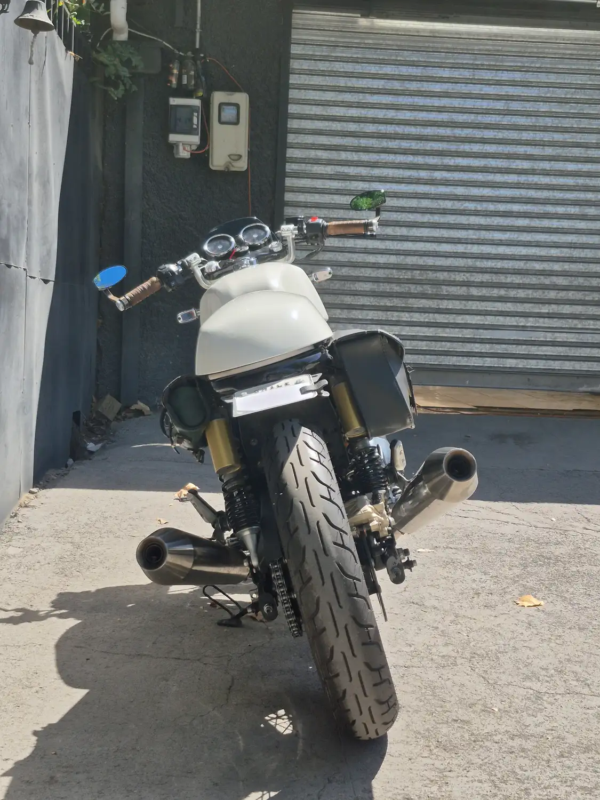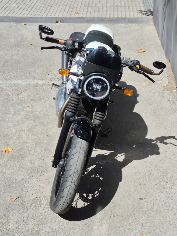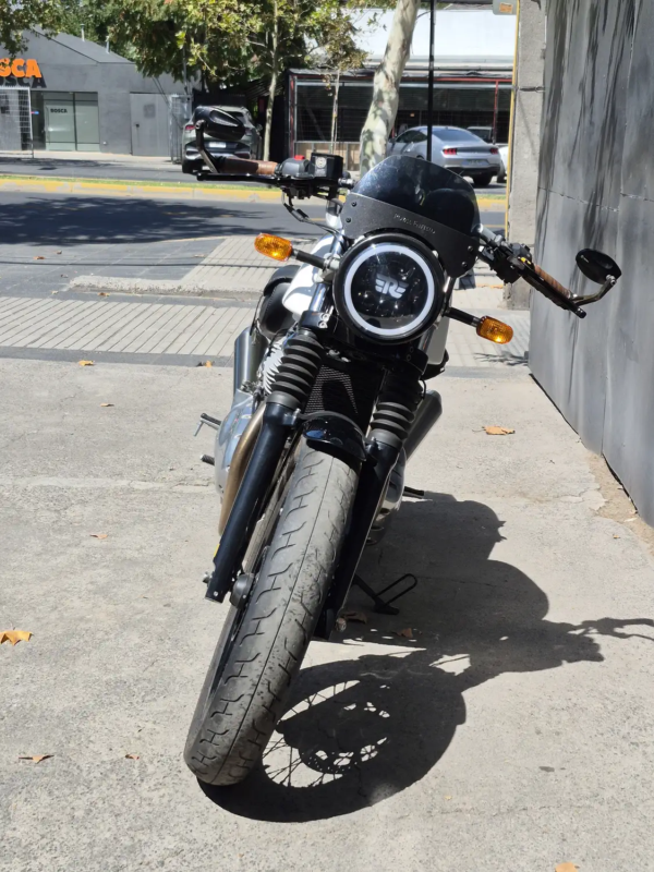 | OBSERVACIONES: | Motor bicilíndrico en paralelo refrigerado por aire/aceite de 648 cc, potencia de 47 hp y 52 Nm de torque, inyección electrónica, transmisión de 6 velocidades con embrague asistido y antirrebote, chasis tubular de acero desarrollado por Harris Performance, suspensión delantera horquilla telescópica de 41 mm y doble amortiguador trasero ajustable en precarga, frenos de disco con ABS, rueda delantera de 18” y trasera de 18”, peso aproximado de 214 kg en orden de marcha y estanque de combustible de 12,5 L. |