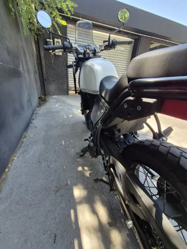 | OBSERVACIONES: | Motor monocilíndrico LS410 de 411 cc (24.3 CV, 32 Nm) refrigerado por aire, con transmisión de 5 velocidades, suspensión delantera telescópica y trasera monoshock (200 mm de recorrido), frenos delantero disco con ABS y trasero tambor (ABS desconectable en la rueda delantera), chasis semi-doble cuna de acero, asiento bajo (800 mm), tanque de 15 L y peso 199 kg (en orden de marcha). Equipada con llantas de radios 21″/17″, neumáticos todo terreno, protecciones de motor y radiador, parrilla trasera integrada, pantalla digital-analógica con tripper (navegación por smartphone) y faros LED |