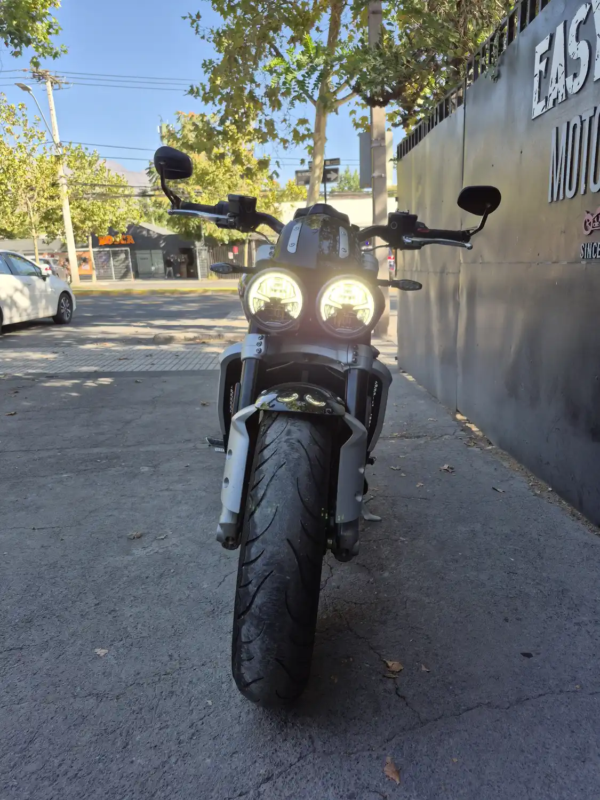 | OBSERVACIONES: | motor tricilíndrico en línea de 2,458 cc (litros) refrigerado por líquido, con un diámetro por carrera de 110.2 mm x 85.9 mm, que desarrolla 167 CV a 6,000 rpm y 221 Nm de par a 4,000 rpm, El sistema de frenos incluye discos delanteros dobles de 320 mm con pinzas radiales monobloque Brembo Stylema de 4 pistones, un disco trasero de 300 mm con pinza Brembo de 4 pistones y ABS en curva (Cornering ABS) de serie . Cuenta con un peso en seco de 291 kg, una altura de asiento de 773 mm, un depósito de 18 litros. |