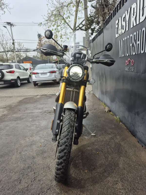 | OBSERVACIONES: | Motor bicilíndrico de 1.200 cc (90 CV, 110 Nm) con entrega lineal de potencia, suspensión Öhlins totalmente ajustable (240 mm de recorrido), frenos Brembo con ABS desconnectable, llantas de radios 21″/17″ con neumáticos off-road, asiento alto (870 mm) y tanque de 16 L. Incluye modos de conducción (Lluvia, Carretera, Off-Road, Personalizable), control de tracción, pantalla TFT, luces LED full y protección integral (cárter, faro). Peso 206 kg (en seco). |