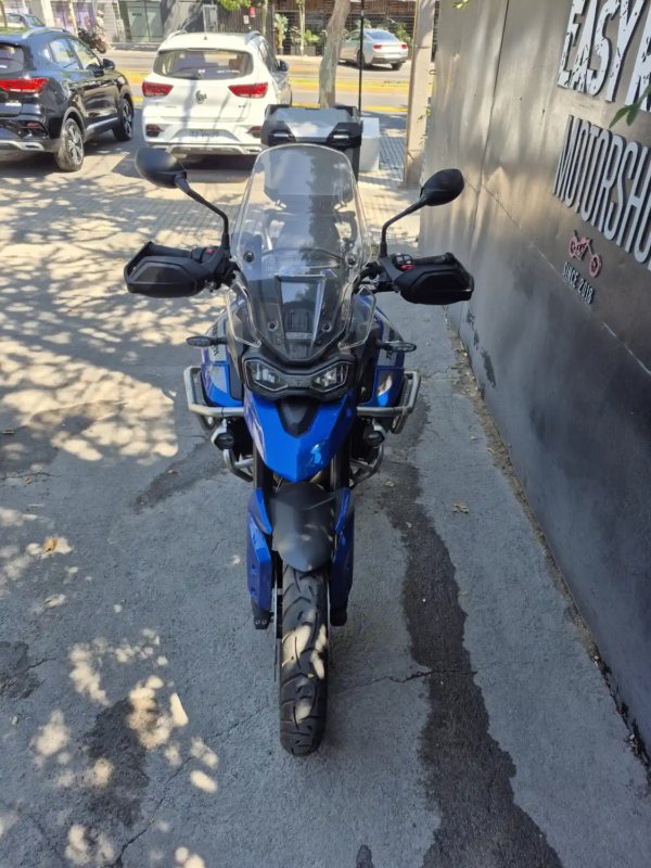 | OBSERVACIONES: | Motor tricilíndrico de 888 cc (95 CV, 87 Nm) con distribución T-plane para un carácter más vibrante, transmisión de 6 velocidades y quickshifter bidireccional, suspensión Showa semi-activa (ajuste electrónico automático), frenos Brembo con ABS desconnectable y frenada vinculada, asiento ajustable eléctricamente (800-820 mm), tanque de 20 L y peso 201 kg (en orden de marcha). Equipada con pantalla TFT de 7″ con navegación integrada, control de crucero adaptativo por radar, calefacción en asiento y manillares, luces LED adaptativas, llantas de aleación 19″/17″ y maletas laterales rígidas de serie. |