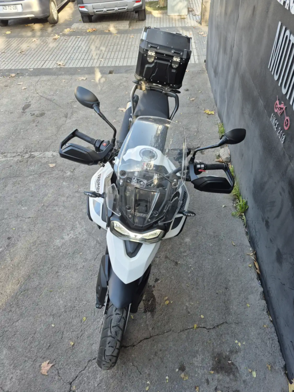 | OBSERVACIONES: | Motor tricilíndrico en línea T-Plane de 888 cc refrigerado por líquido, que desarrolla 94.2 CV a 8,750 rpm y 87 Nm de par a 6,250 rpm, acoplado a una transmisión de 6 velocidades con Quick Shift de serie (para subir y bajar marchas). Su chasis multitubular en acero soporta una suspensión delantera Marzocchi de 45 mm (180 mm recorrido) ajustable en rebote y precarga y una trasera Marzocchi monoamortiguador (170 mm recorrido) ajustable en precarga. El sistema de frenos incluye discos delanteros dobles de 320 mm con pinzas Brembo Stylema de 4 pistones y un disco trasero de 255 mm, con ABS de doble canal y función «Cornering» de serie. Diseñada para una mayor accesibilidad, cuenta con una altura de asiento de 760-780 mm (ajustable), un peso en orden de marcha de 215 kg, un depósito de 20 litros y un paquete electrónico integral que incluye 5 modos de conducción (Lluvia, Carretera, Deportivo, Terreno, Personalizable), control de tracción, control de crucero, pantalla TFT de 7″ con conectividad y faros LED con función de curva. |